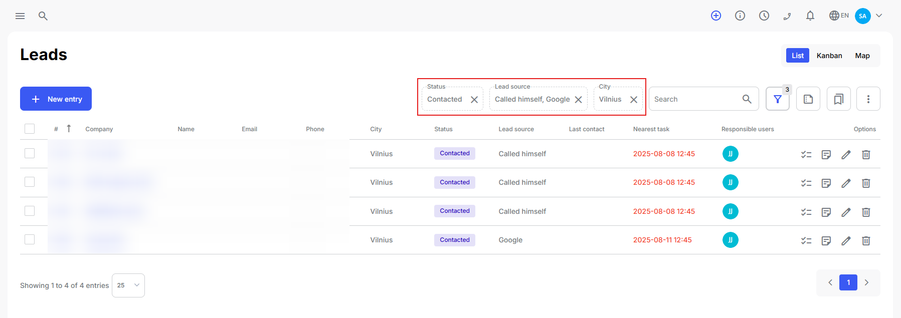 Filter selections, as before, will be displayed above the records table, so you will always see which filters are active.