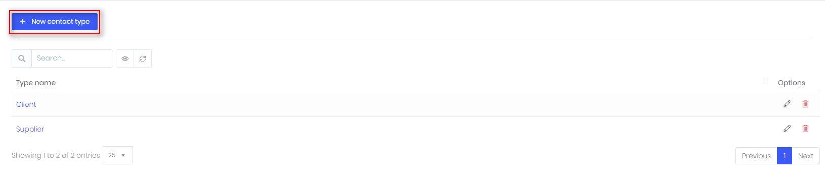 - Click New contact type: