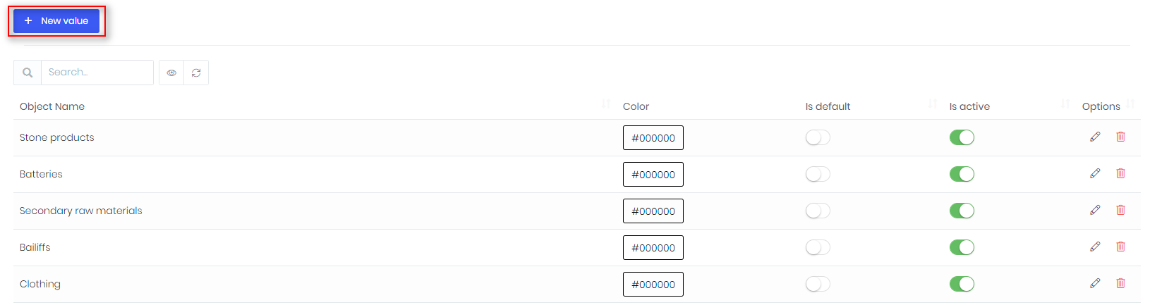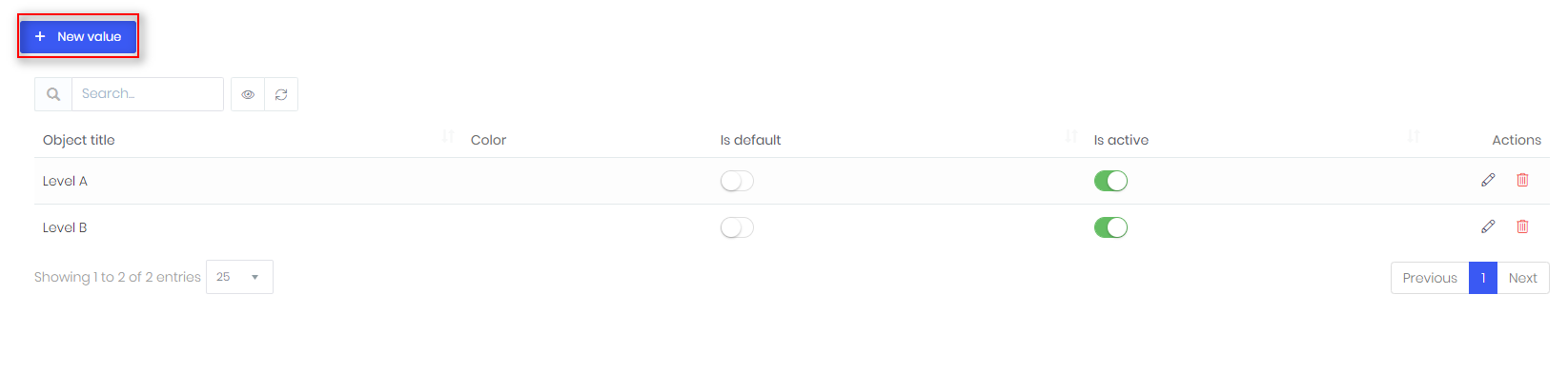 - Press Save. In order to edit or delete value, use Actions menu: