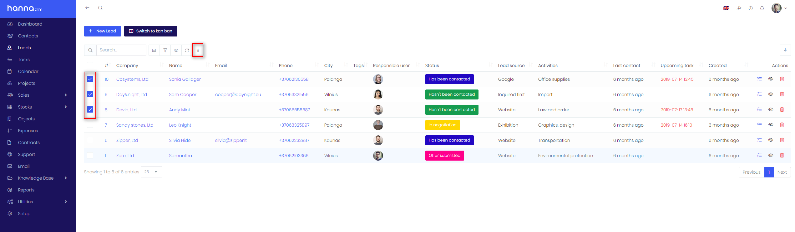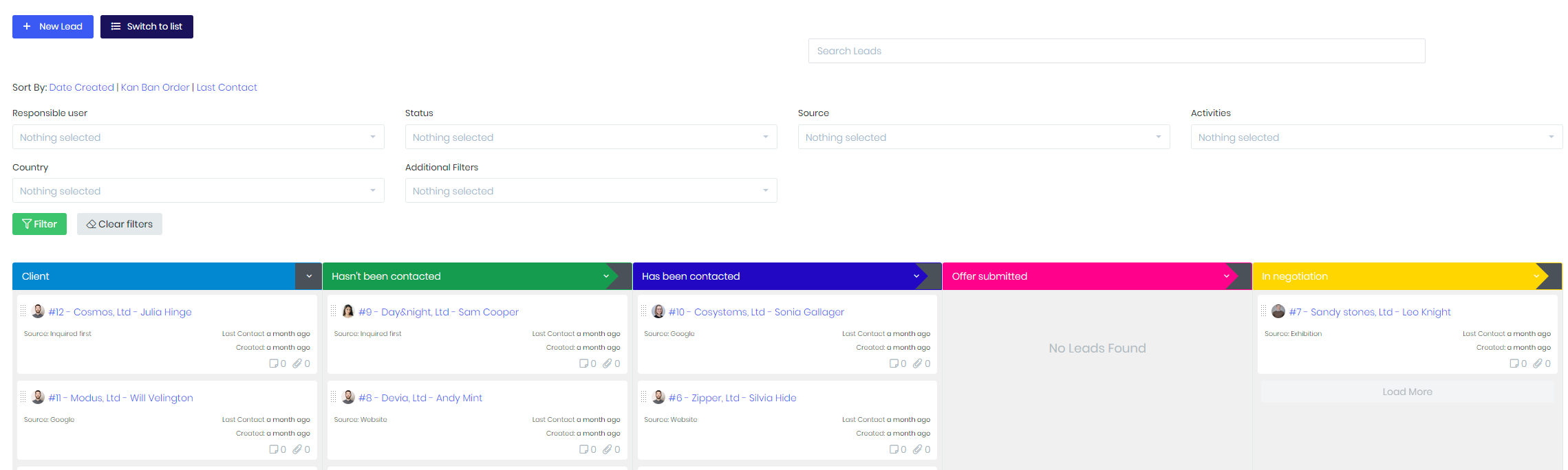 Leads can be analysed using kan ban. Select Switch to kan ban: