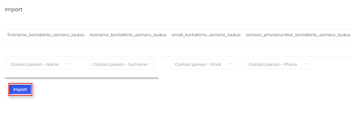 Select a file (xls, xlsx, scv) - make sure that the first line in your file are titles and below - data without any spaces. Map the fields and press Import: