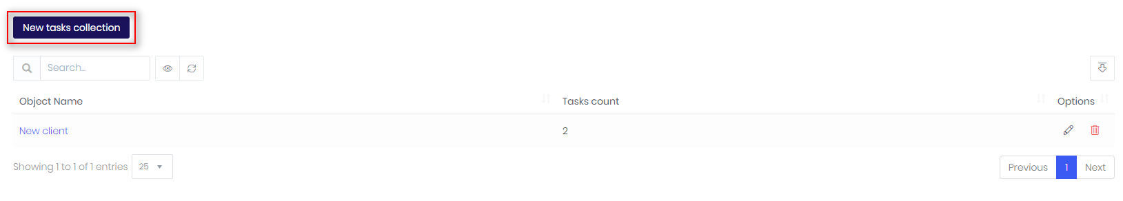 - To create task set, choose Setup -> Tasks -> Tasks sets. Click New tasks collection: