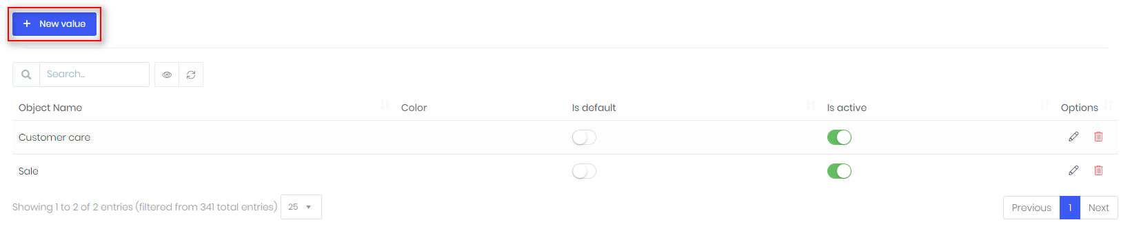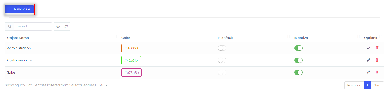 - If you do not need the value anymore, but you wish to keep history related to it, mark the value inactive.