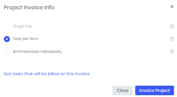 System provides option to invoice project: