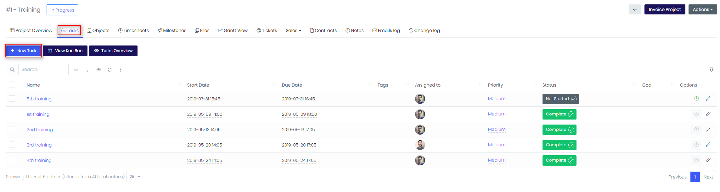 In Tasks column you can check comparison of completed tasks with total tasks.