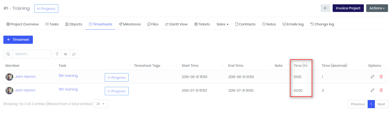 - Timesheets