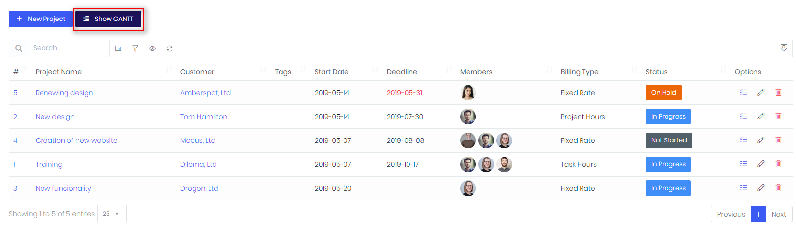Projects list