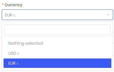 - To add currency, choose Setup -> Finance -> Currencies -> New currency.
