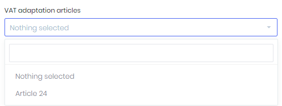 - Create VAT adaptation article entries by choosing Setup -> Finance -> VAT adaptation articles -> New value.