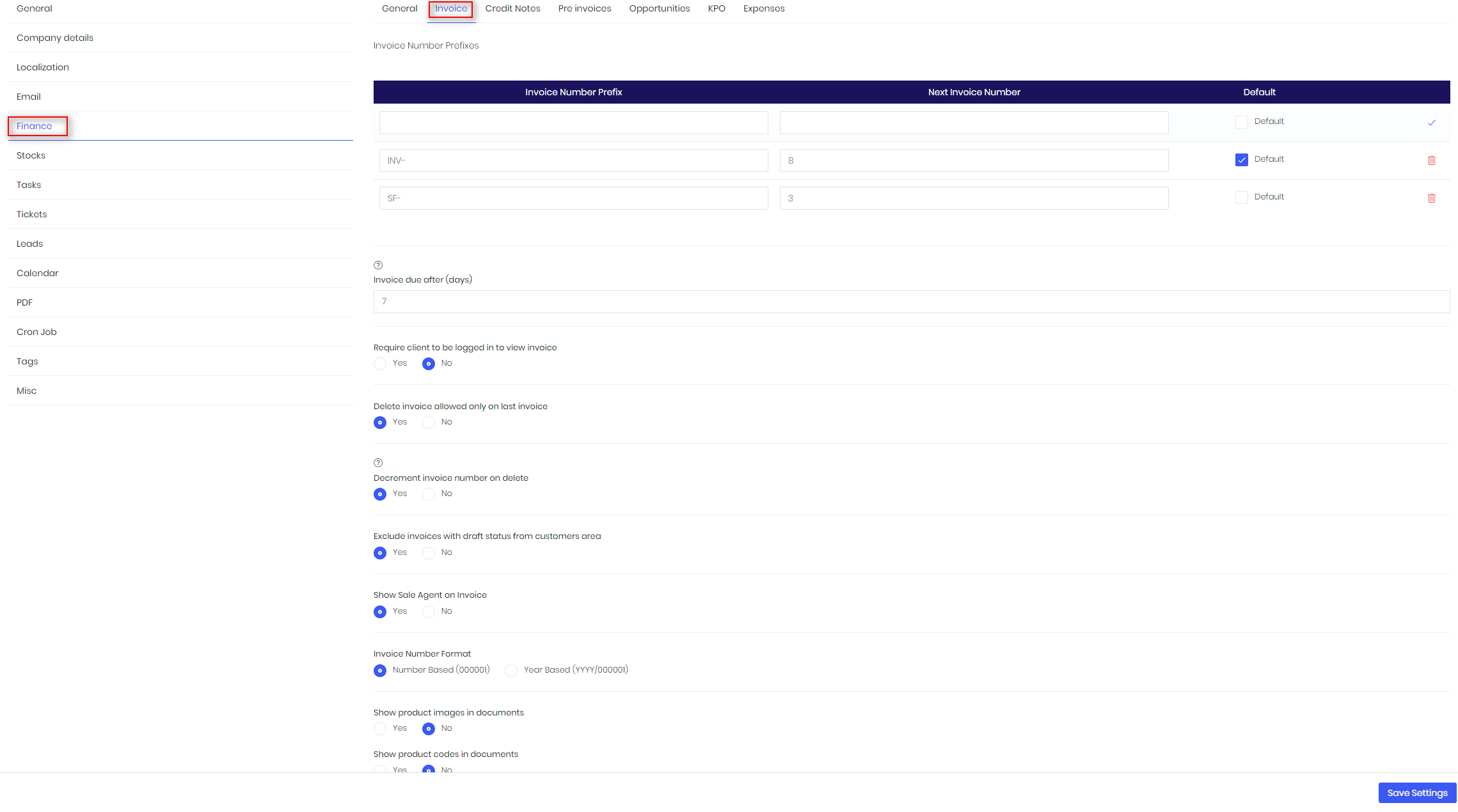 Setup -> Settings -> Finance -> Invoice – indicate: