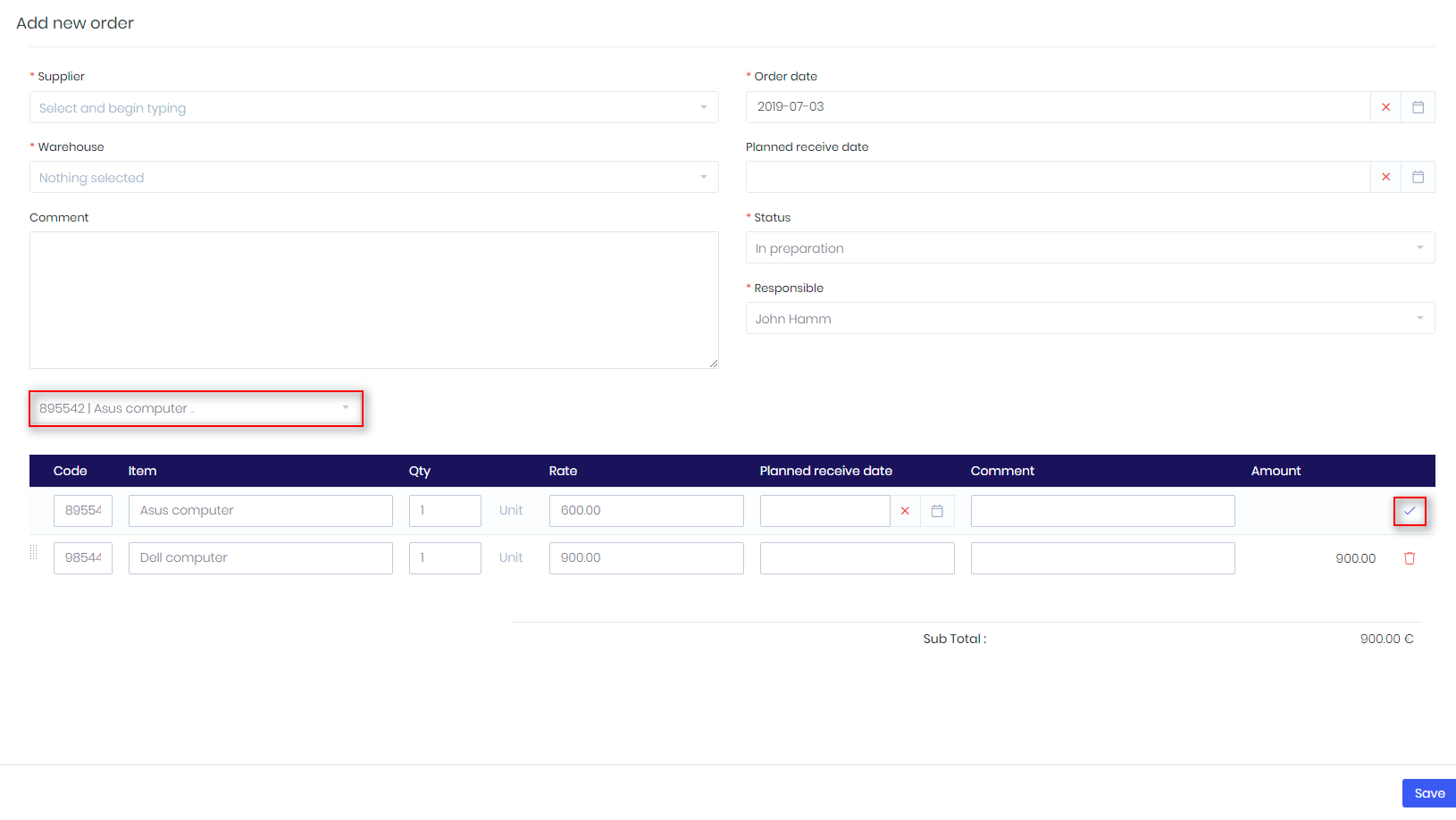 When creating an order, you must specify warehouse. To create warehouse, follow this article.