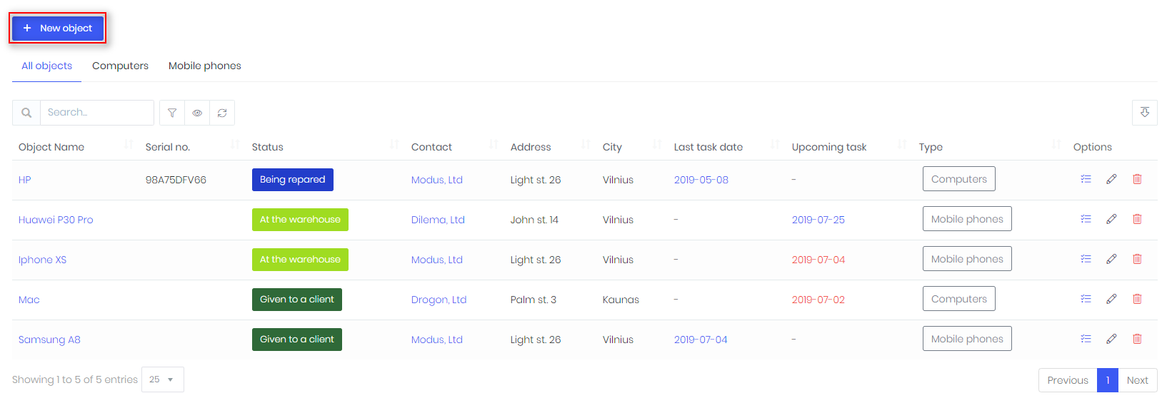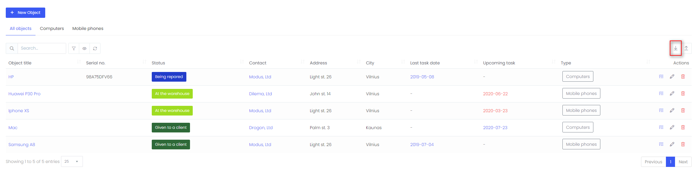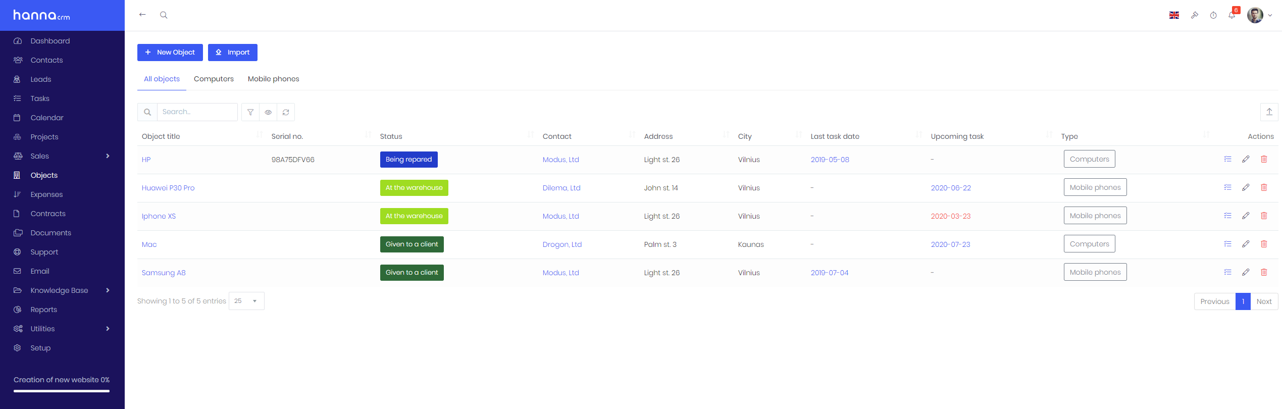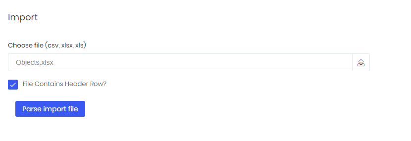 There is a possibility to import objects to Hanna CRM system from csv, xlsx, xls format files. Select Objects module and press Import button: