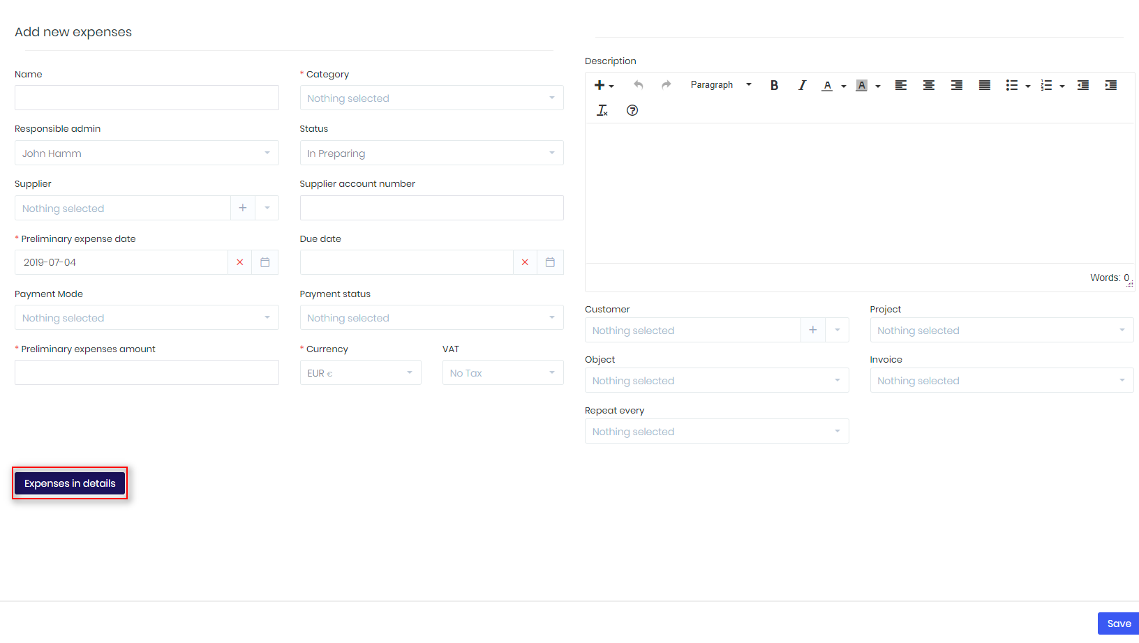 Creating expenses