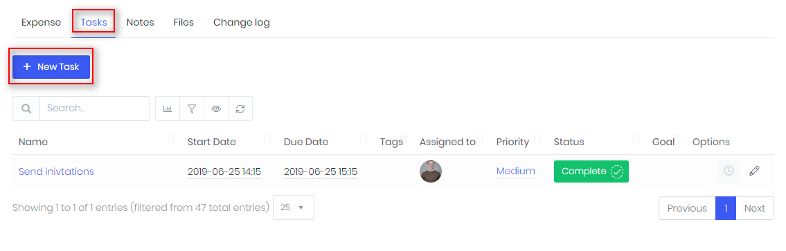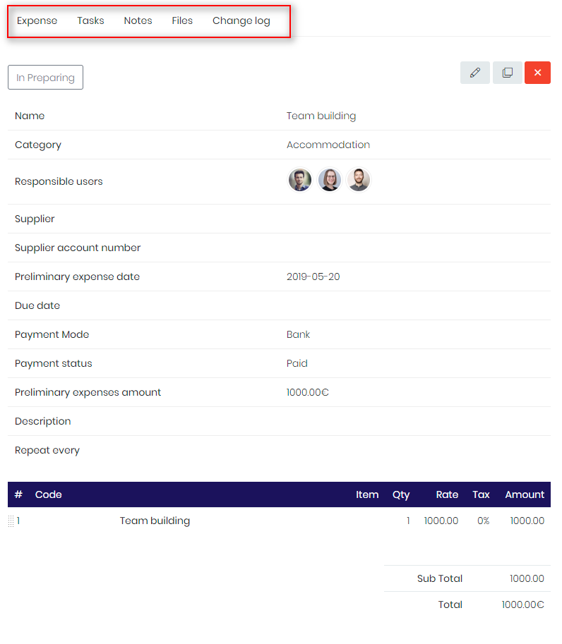 - Task will be available both at expense profile card and in Tasks module.
