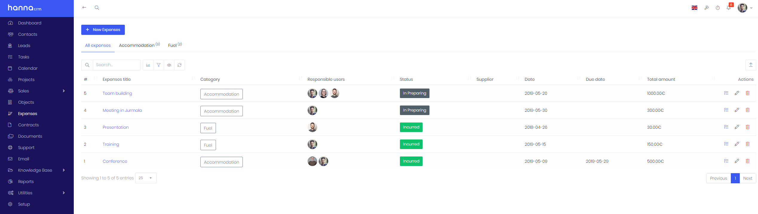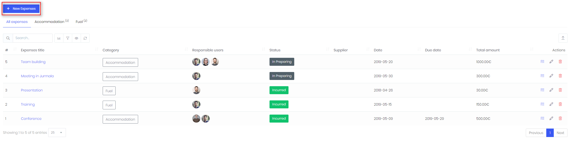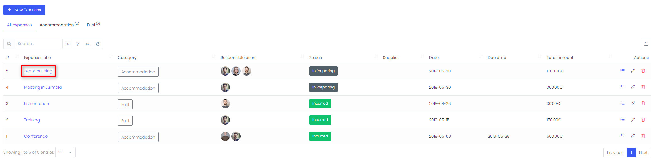 To edit expenses, use Actions menu: