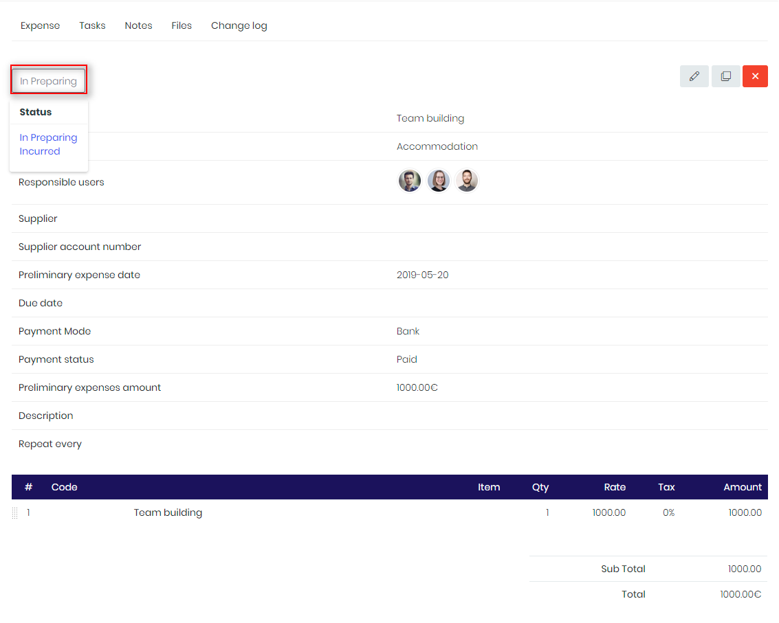 See all the information related to expense: