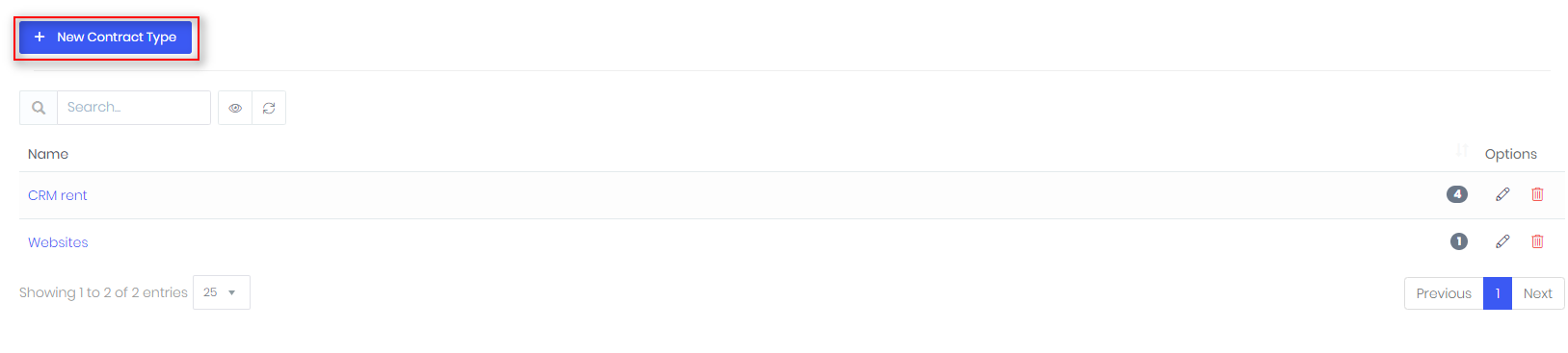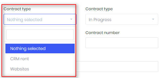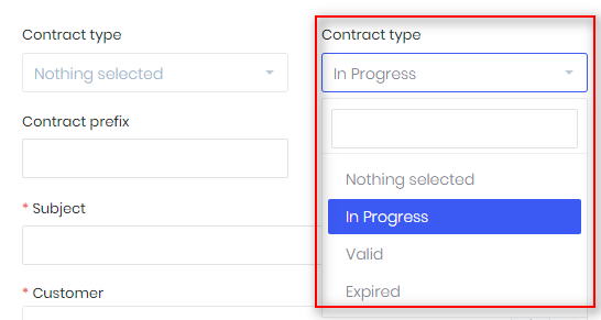 - To create more statuses, choose Setup -> Contracts -> Contract types and click New value.