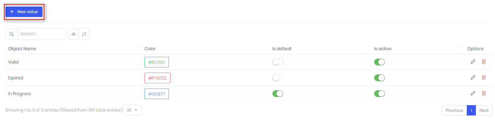 - There is an option to make value inactive.