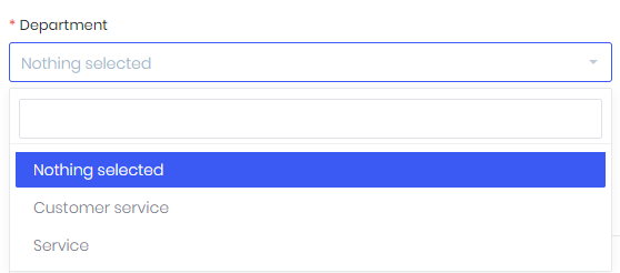 - To create departments, choose Setup -> Support -> Departments and click New department: