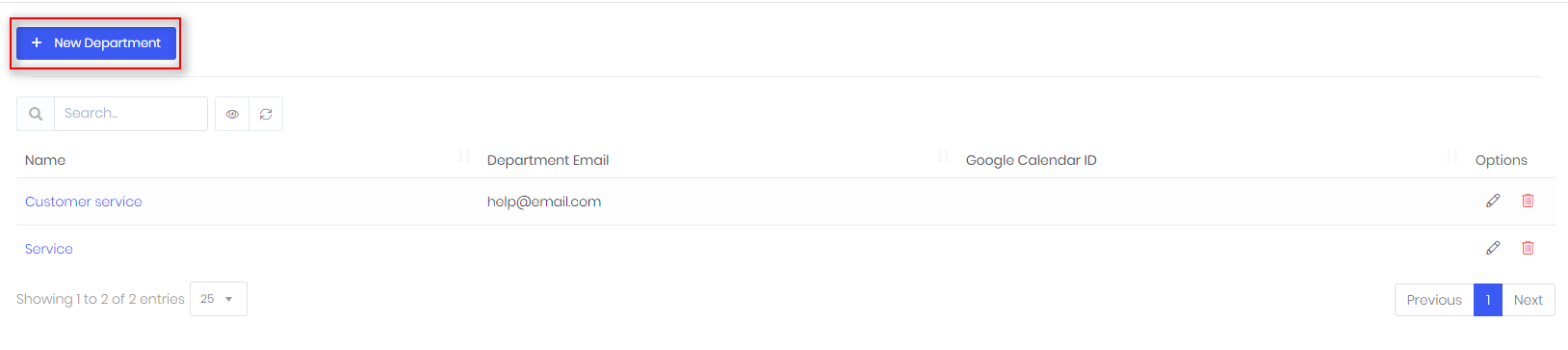 - To edit or delete department value, use Actions: