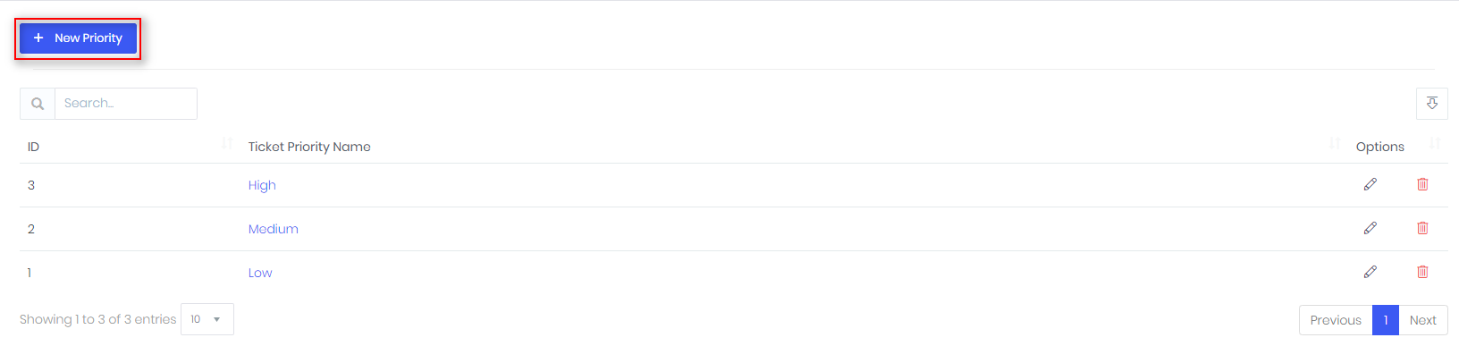- To edit or delete priority value, use Actions: