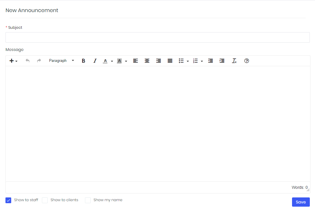 - To enter announcement, choose Utilities -> Announcements -> New announcement.