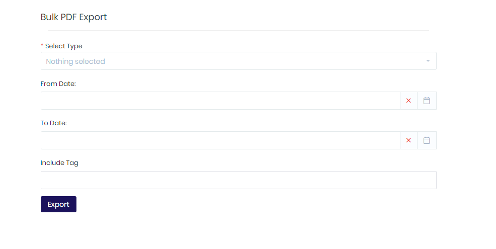Select Utilities -> Bulk PDF export to export invoices, pre invoices, payments or opportunities.