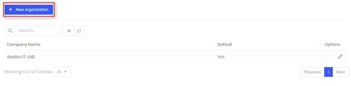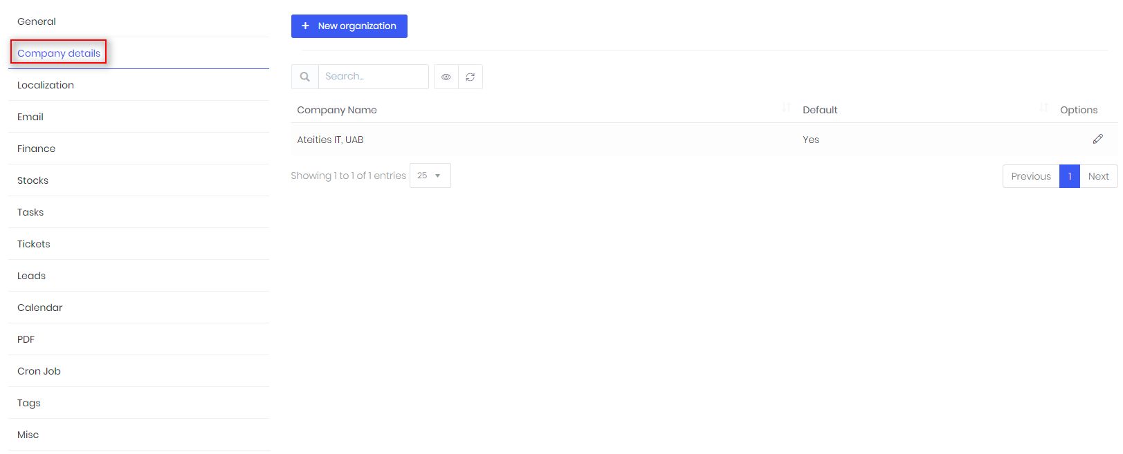 Setup -> Settings -> Company details – insert details about your company or create more organizations.