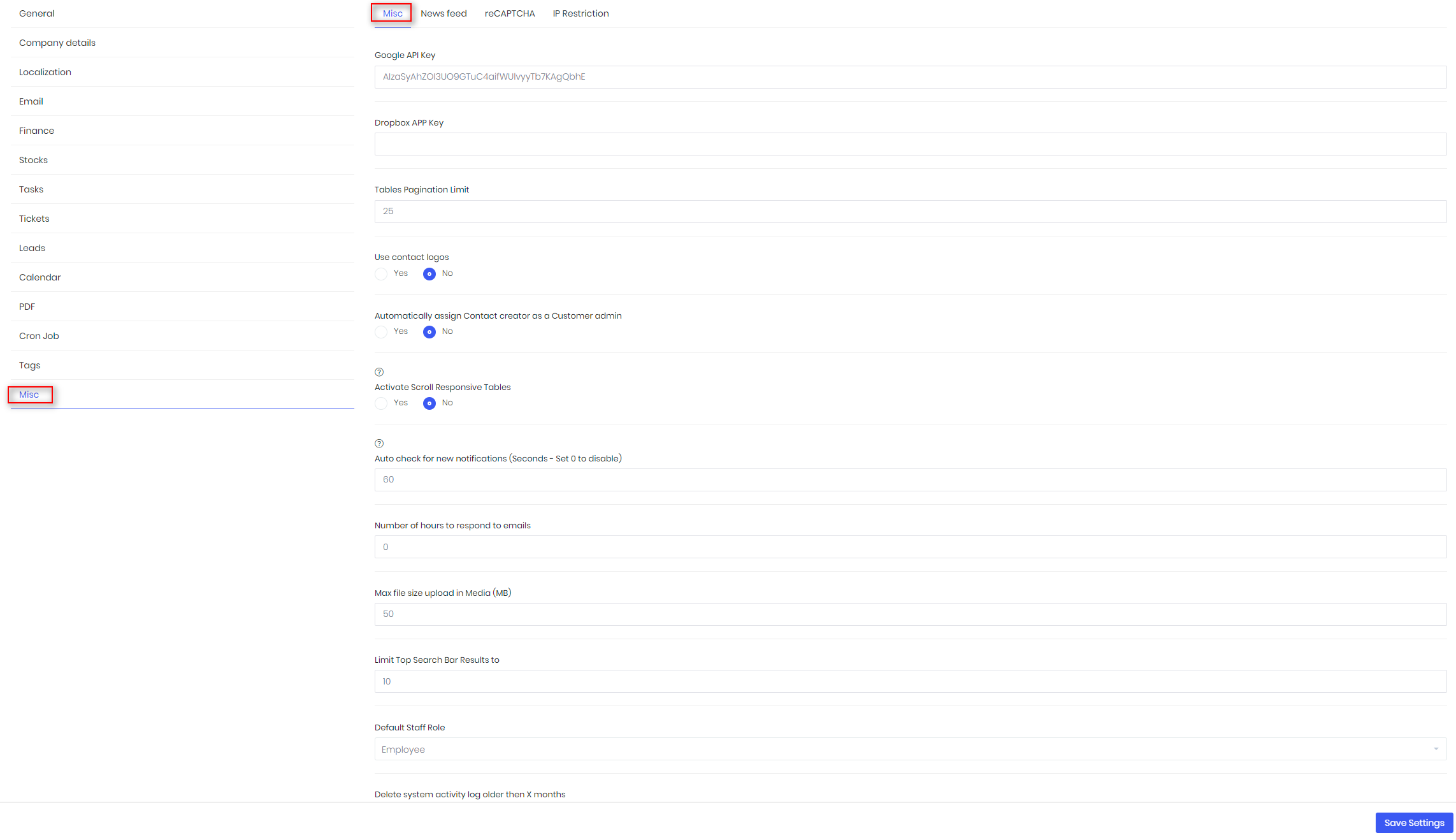 Settings -misc
