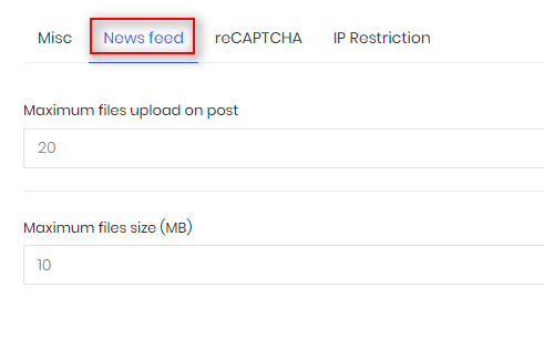- Max file size upload in Media (MB);