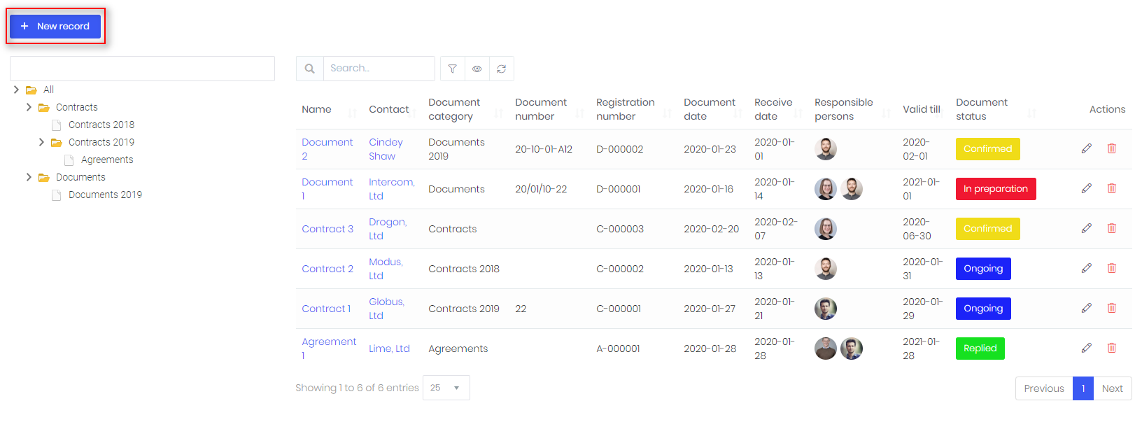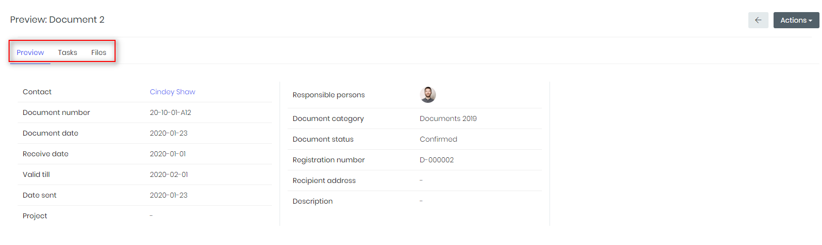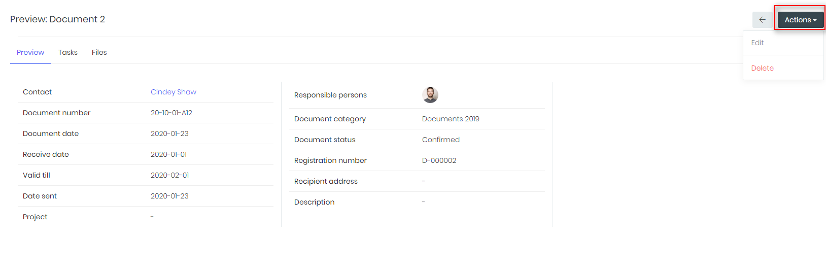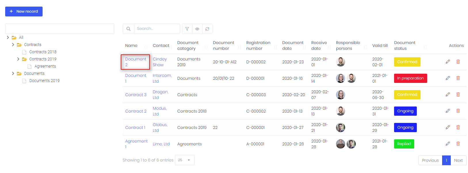 In module Documents you can archive documents and create document tree. Enter document description, attach files and create tasks, related to document.
