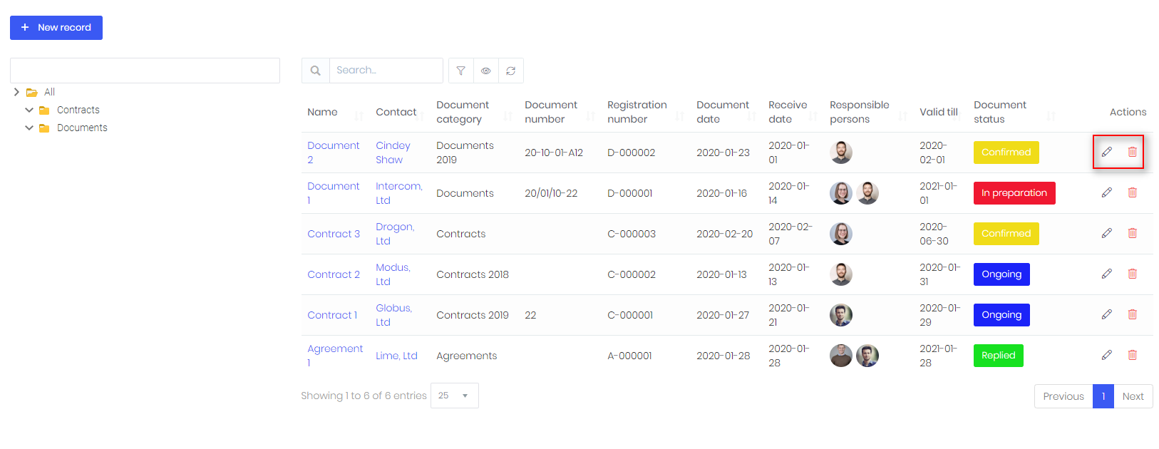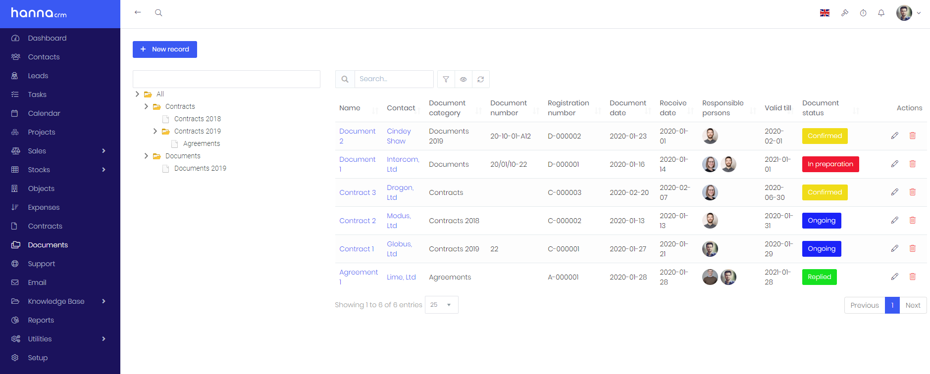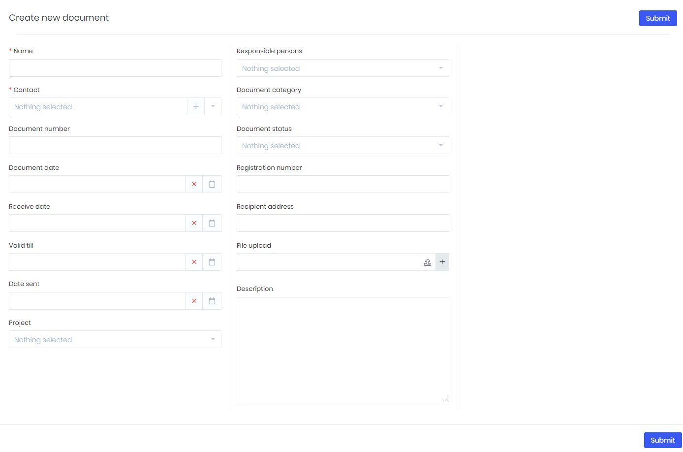 In module Documents you can archive documents and create document tree. Enter document description, attach files and create tasks, related to document.