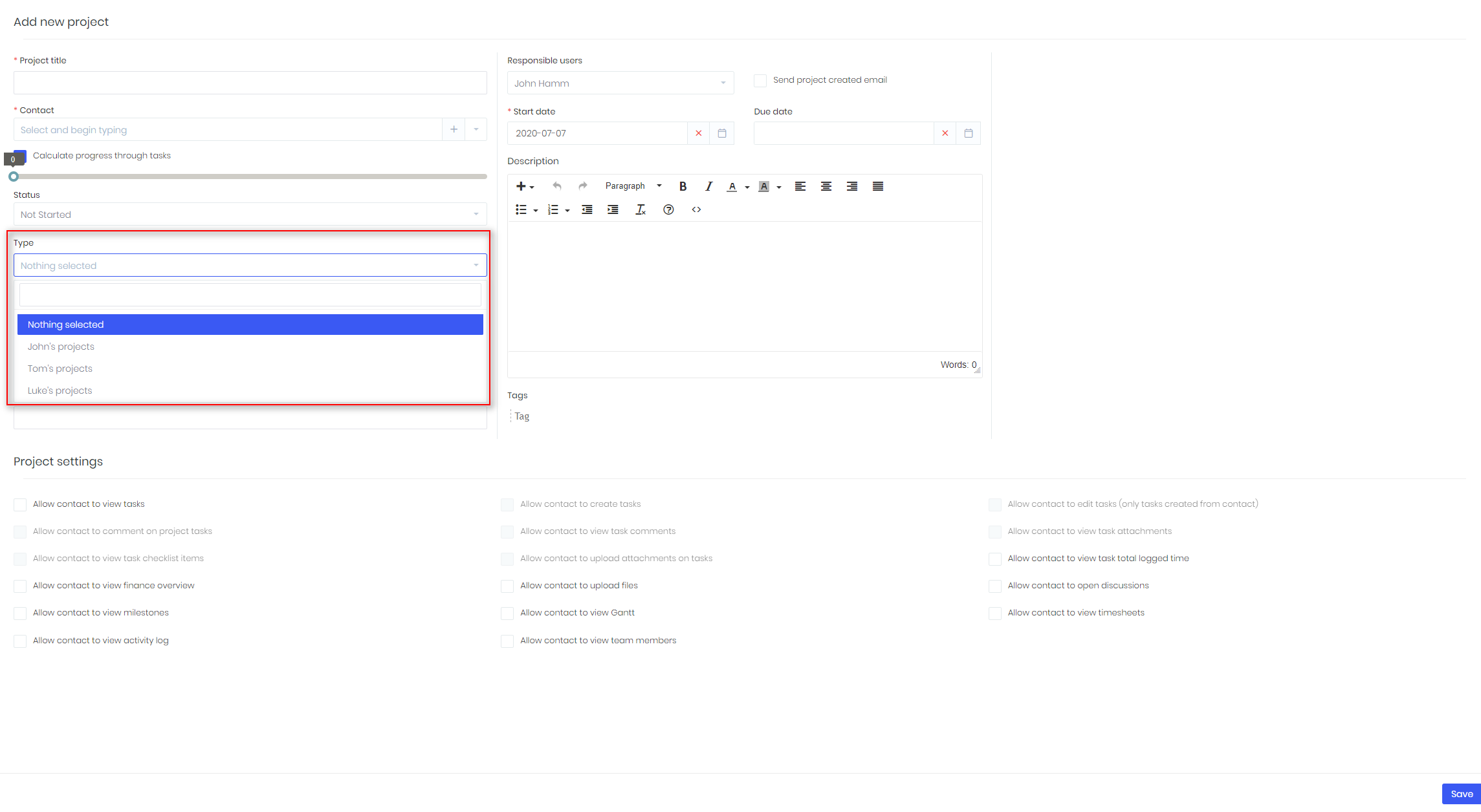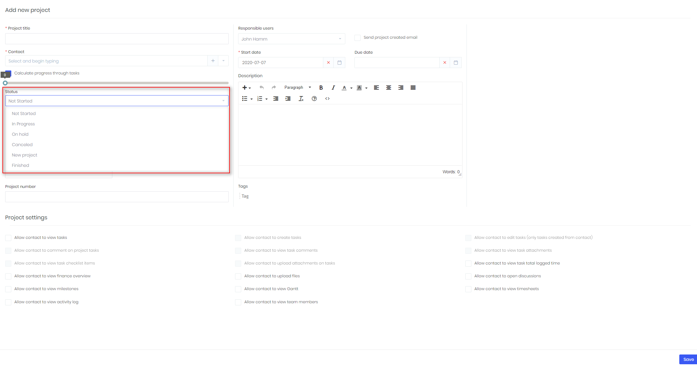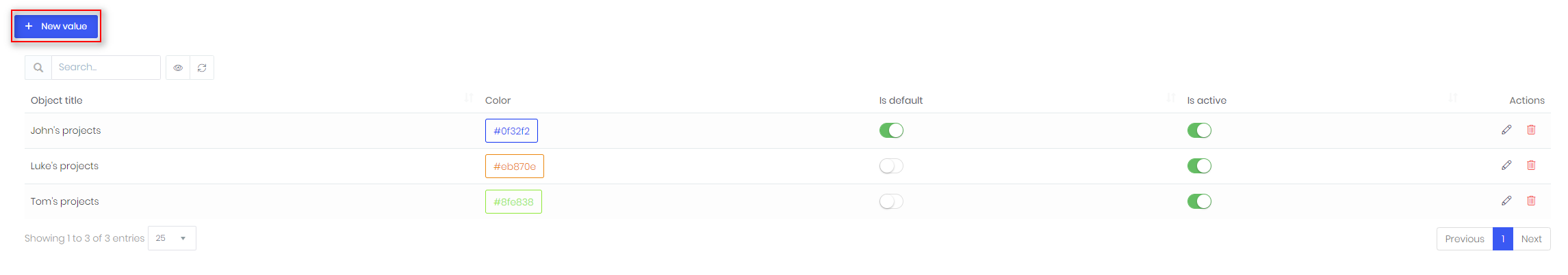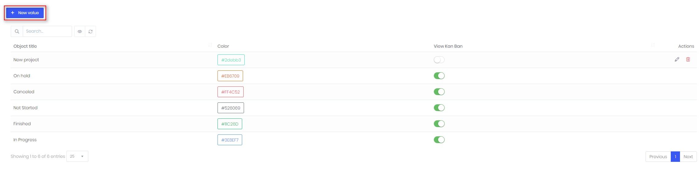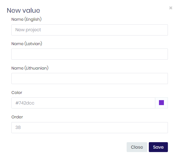 - To enter new project status, select Setup > Modules picklists > Project status. Click New value: