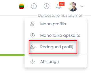 Norėdami sinchronizuoti Hanna CRM su Office 365 kalendoriumi, spauskite ant savo ikonos ir pasirinkite Redaguoti profilį: